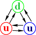 Цветовая схема кварков даёт возможность понять выделенность в природе из всех их возможных сочетаний таких структур, как ,  и .