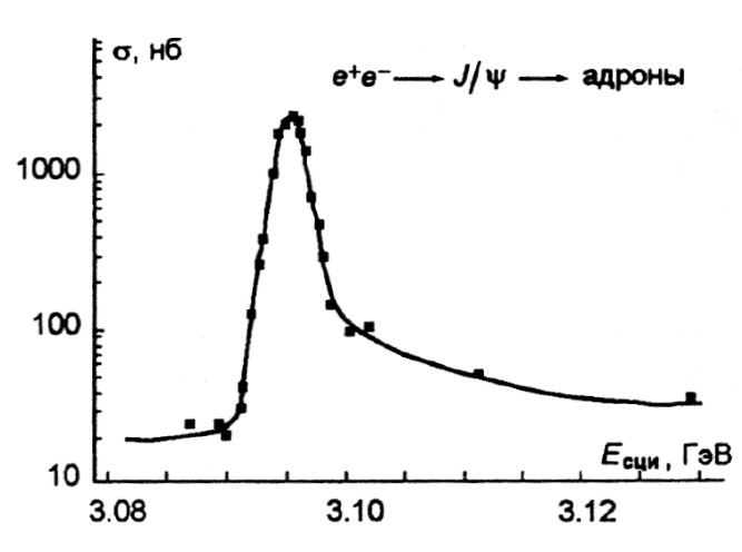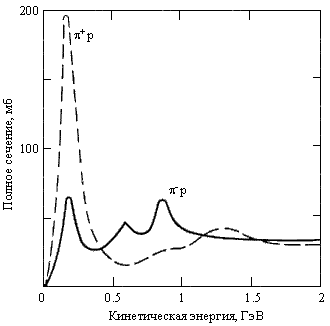где - постоянная планка (  ),  – полная ширина распада (ширина энергетического уровня возбуждённого состояния протона, возникающего после поглощения пиона), которая определяется на  половине высоты резонанса. Так было установлено, что для случая упругого рассеяния (1-й случай)  имеет порядок Дальнейшие исследования показали, что резонансные пики наблюдаются и при взаимодействии -мезонов с другими адронами. Таким образом был обнаружен целый класс короткоживущих частиц, получивших название резонансов из-за характерного вида кривых эффективного сечения.